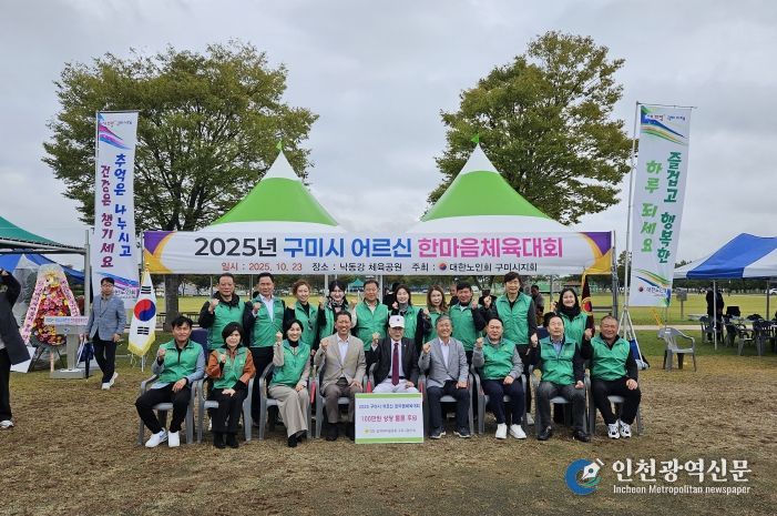[인천광역신문] 관리자 기자 | 구미시는 10월 23일 낙동강체육공원 게이트볼장과 파크골프장에서 700여 명의 어르신이 참여한 가운데 ‘2025년 어르신 한마음체육대회’를 성황리에 개최했다. 이날 행사에는 김장호 구미시장, 박교상 구미시의장을 비롯해 시·도의원, 기관단체장이 함께해 어르신들을 격려했다.