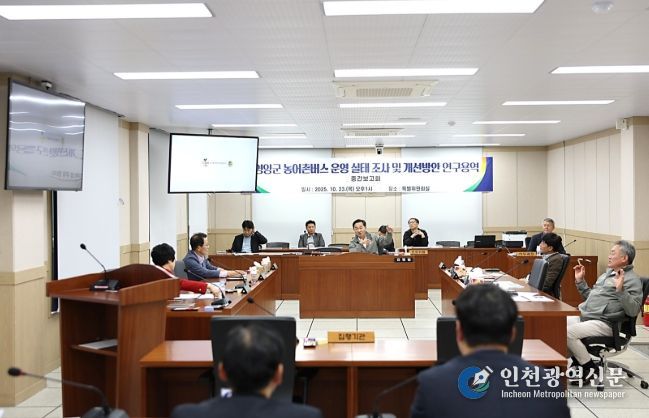 [인천광역신문] 관리자 기자 | 영양군의회 의원연구단체 ‘영양군 농어촌버스 운영 개선방안 연구회’는 10월 23일 군의회 특별위원회실에서 영양군 농어촌 버스 운영 실태를 면밀히 돌아보고 지역 실정에 맞는 실질적인 개선 대책을 발굴하기 위한 '영양군 농어촌버스 운영 실태 조사 및 개선방안 연구용역' 중간보고회를 개최했다.