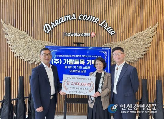 이상근 고성군수는 “지역 청소년들의 문화예술 활동을 위해 기탁해주신 ㈜가람토목에 감사의 인사를 전한다”라며, 이런 따뜻한 마음이 고성의 미래를 밝게 만들고 지역 청소년들에게 큰 힘이 될 것”이라고 전했다.