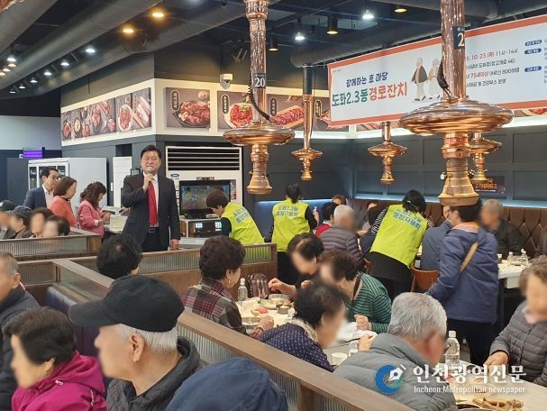 24일 주안4동(동장 김영선)은 관내 75세 이상 어르신 500여 명을 모시고 관내 음식점 ‘경인궁’에서 경로잔치를 개최했다.