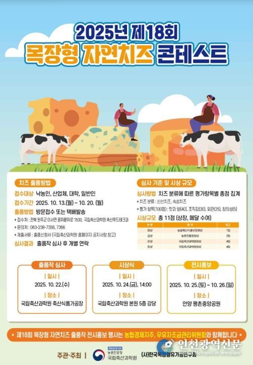 이번 대회 출품 치즈는 10월 25~26일 경기도 안양시 평촌중앙공원에서 열리는 ‘세계 우유의 날, 2025 밀크&치즈 페스티벌’에서 전시될 예정이다.