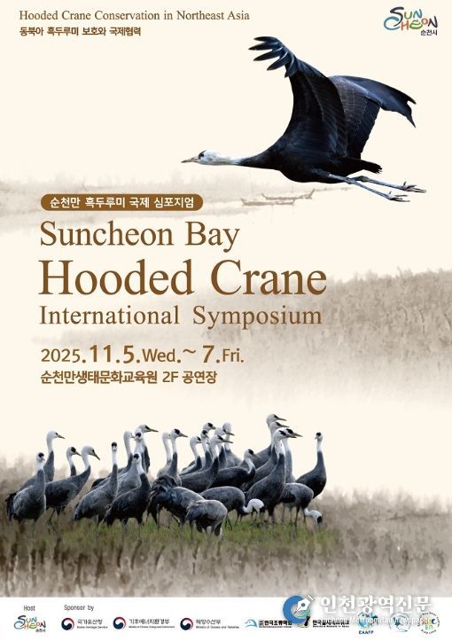 [인천광역신문] 관리자 기자 | 순천시는 오는 11월 5일부터 7일까지 3일간 순천만생태문화교육원과 순천만습지 일원에서 '2025 순천만 흑두루미 국제심포지엄'을 개최한다고 밝혔다.