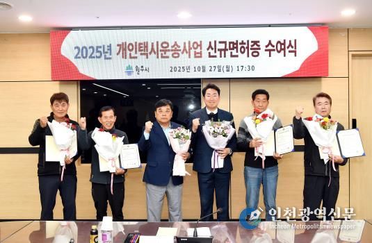[인천광역신문] 관리자 기자 | 원주시는 2025년 개인택시운송사업 신규 면허 대상자 4명을 확정· 발표하고, 이달 27일 시청 7층 회의실에서 개인택시 운송사업 신규 면허증 수여식을 개최했다.