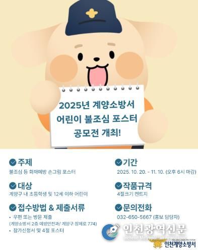 [인천광역신문] 최예준 기자 | 계양소방서은 불조심 강조의 달인 11월을 맞아 ‘2025년도 어린이 불조심 포스터 공모전’을 개최한다고 28일 밝혔다.