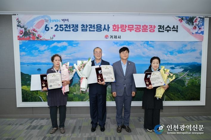 [인천광역신문] 관리자 기자 | 거제시는 지난 27일 6·25전쟁 참전용사 故박석규 상병 자 박상수 님과 故신동개 상병 조카 신복규 님, 故이일윤 하사 자 이정애 님께 화랑무공훈장을 전수했다.