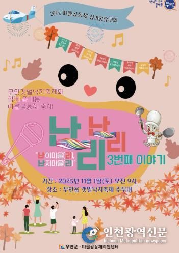 [인천광역신문] 관리자 기자 | 전남 무안군은 11월 1일 무안읍 갯벌낙지축제 주무대에서 ‘난리난리 제3탄’을 2025년 무안군 일반농산어촌개발사업 성과발표회로 개최한다.