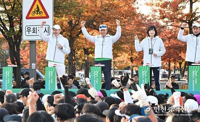 [인천광역신문] 관리자 기자 | 오세훈 서울시장은 2일 07시 30분 상암월드컵공원(마포구 상암동)에서 열린 ‘2025 JTBC 서울마라톤’ 출발식에 참석해 대회 개최를 축하하고 출전 선수들의 안전한 완주를 응원했다.