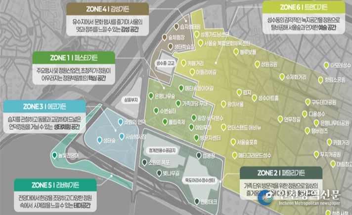 서울숲 인근 성수동 일대의 골목과 자투리땅 등에도 도심형 정원을 조성하고 한강·중랑천 수변 공간까지 범위를 연장해 계절별 매력적인 경관도 조성한다. ‘서울숲’의 자연과 ‘성수동’의 문화에너지, ‘수변’의 여가를 결합한 서울만이 선보일 수 있는 ‘정원 미학’을 구현한다는 취지다.
