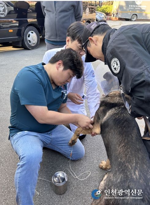 새로운 환경과 임무 수행 중 건강에 문제가 있는 경찰견을 대상으로 현장에서 의료 지원을 했다.”라고 말했다.