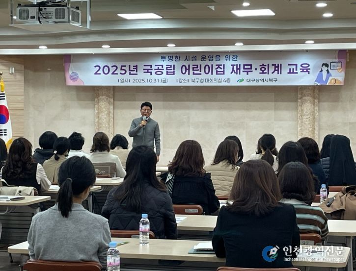 [인천광역신문] 관리자 기자 | 대구광역시 북구청은 10월 31일 북구청 4층 대회의실에서 '어린이집 재무․회계 규칙'을 주제로 하여 관내 국공립어린이집 종사자 41명을 대상으로 교육을 실시했다.