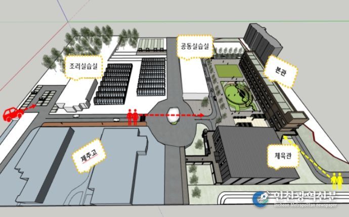 학교는 지상 3층 규모의 모듈러 교실, 다목적체육관, 4동의 실습동으로 구성되며 학교 신설에 따라 다목적체육관 및 급식소 증축, 어울림마당과 운동장 조성, 실습실 리모델링도 추진된다.