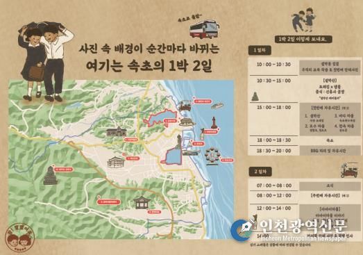[인천광역신문] 관리자 기자 | 속초시는 11월 한 달간 체험형 테마 여행상품인 ‘2025 설악동 활성화 프로그램–추억감성여행’을 총 4회에 걸쳐 운영한다.