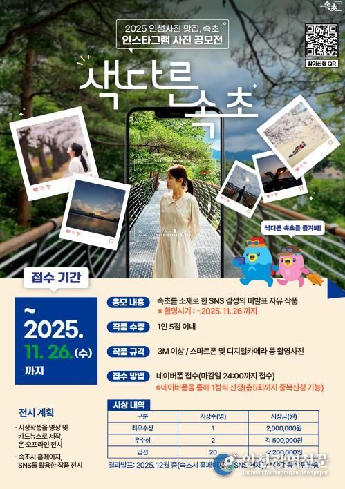 [인천광역신문] 관리자 기자 | 속초시는 2025 ‘인생사진 맛집, 속초’ 사진 공모전을 오는 11월 27일까지 개최한다.
