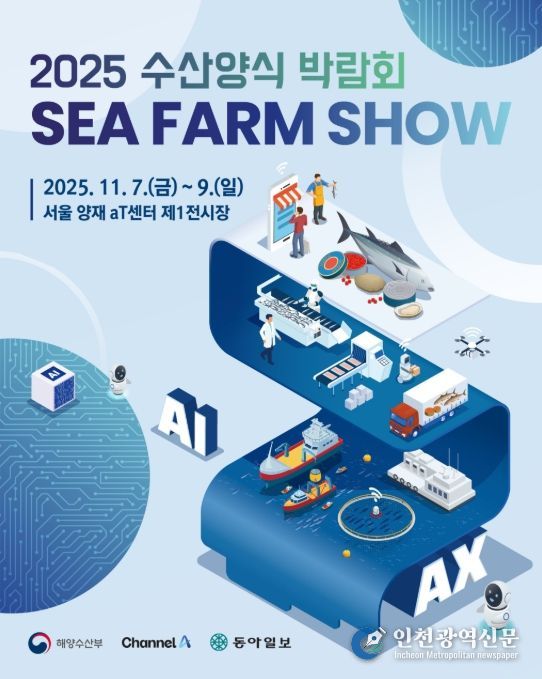 [인천광역신문] 관리자 기자 | 해양수산부는 11월 7일부터 9일까지 서울 양재 aT센터 1층 제1전시장에서 ‘2025 수산양식박람회(Sea Farm Show)’를 개최한다고 밝혔다.