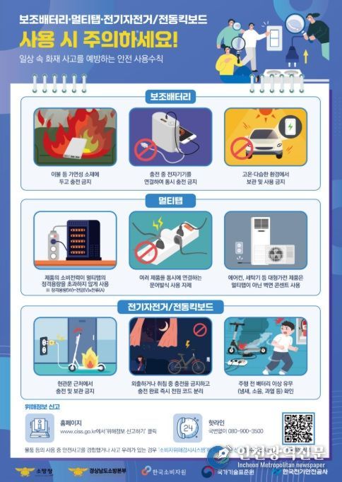[인천광역신문] 관리자 기자 | 소방청은 국민의 안전의식을 높이고 전기제품 화재사고를 예방하기 위해 “전기제품, 편리함 속의 안전 지키기”를 주제로 캠페인을 추진한다고 밝혔다.