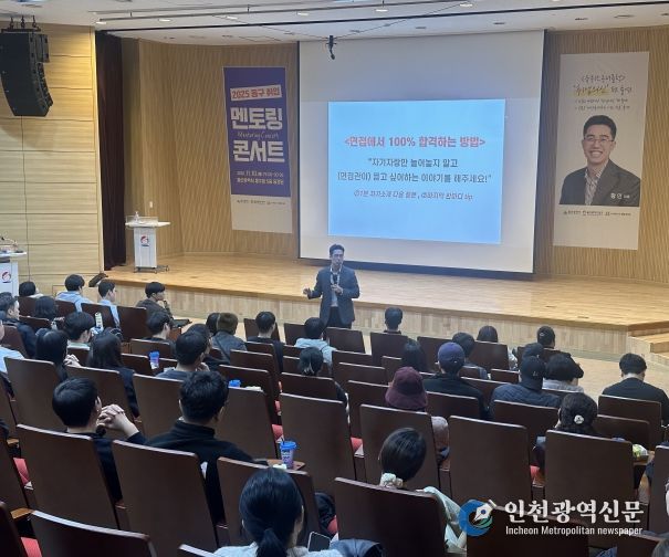 [인천광역신문] 관리자 기자 | 울산 동구는 지난 11월 10일 오후 7시 동구청 5층 중강당에서 유명 취업 강사인 황인 강사를 초청해 ‘2025 동구 취업 멘토링 콘서트’를 성공적으로 개최했다.