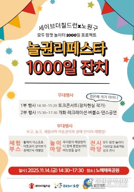 [인천광역신문] 기자 | 서울 노원구가 아동청소년의 놀 권리를 보장하고 장애아동과 함께하는 통합놀이환경 조성 노력을 담은 성과발표회를 개최한다고 밝혔다.