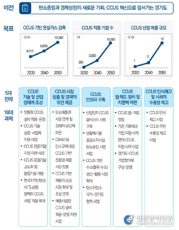 경기연구원은 최근 ‘경기도의 탄소중립 달성을 위한 CCUS 정책 육성 방안’ 보고서를 발간하고, 경기도형 CCUS 육성 로드맵과 5대 전략, 18개 세부과제를 제시했다.