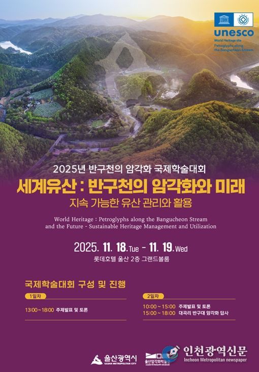 18~19일 양일간 열리는 이번 학술대회는 국내외 암각화 및 세계유산 전문가와 시민 등 200여 명이 참석하며, ‘세계유산:반구천의 암각화와 미래-지속 가능한 유산 관리와 활용’을 주제로 한 논의가 이뤄진다.