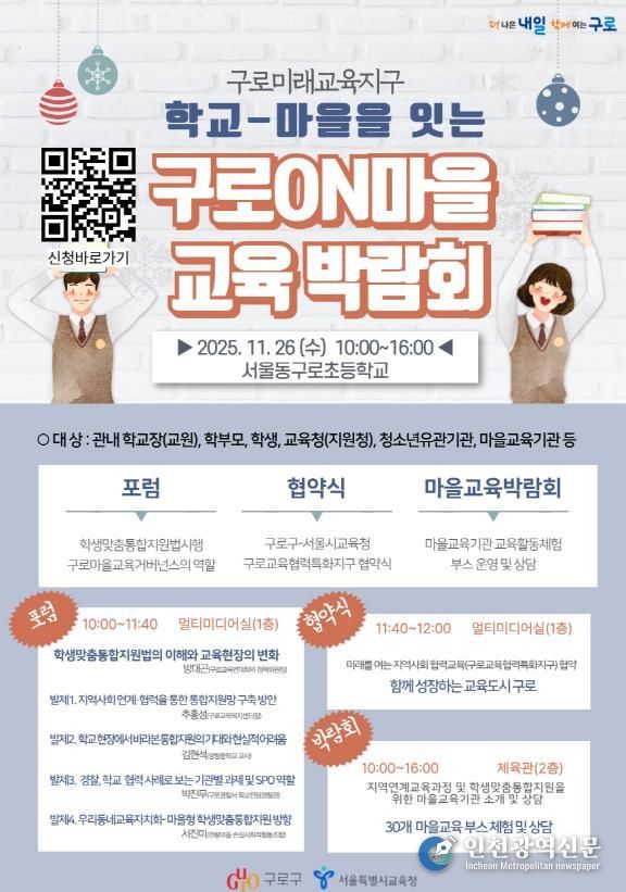 [인천광역신문] 기자 | 구로구가 오는 26일 오전 10시 서울동구로초등학교에서 학교와 마을을 잇는 ‘구로온(ON)마을교육박람회’를 개최한다.