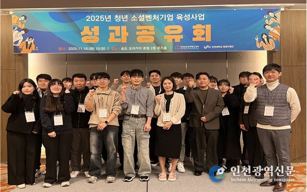 [인천광역신문] 최예준 기자 | 인천광역시는 지난 11월 18일 오라카이 송도파크 호텔에서'2025년 청년 소셜벤처기업 육성사업'의 일환으로 ‘성과공유회 및 네트워킹 행사’를 개최했다고 밝혔다.