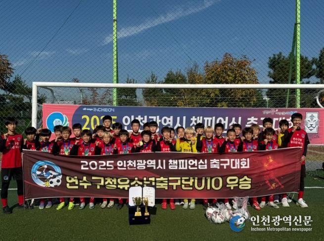 [인천광역신문] 최예준 기자 | 연수구청 유소년축구단이 ‘2025 인천광역시 챔피언십 축구대회’에서 10세 이하(U-10) 부문 ‘우승’ 및 11세 이하(U-11) 부문 ‘준우승’을 차지했다.