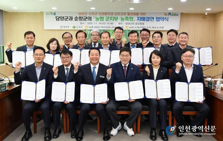 [인천광역신문] 관리자 기자 | 담양-순창군 농축협이 19일 담양군청 송강정실에서 자매결연을 맺고 상생협력을 담은 협약서에 공동 서명했다.