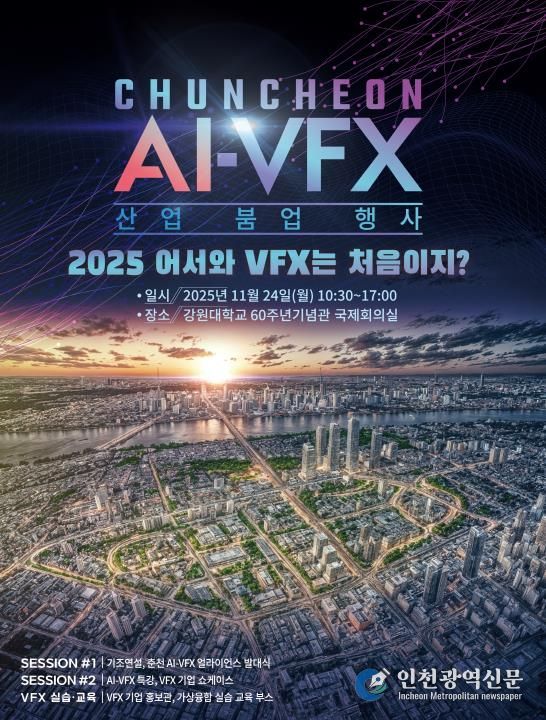[인천광역신문] 관리자 기자 | 춘천시는 2025년 11월 24일 강원대학교 60주년 기념관 국제 회의실에서 ‘춘천 AI-VFX 산업붐업행사 – 2025 어서와! VFX는 처음이지?’를 개최한다고 밝혔다.