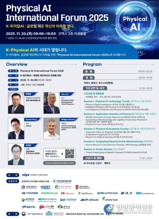 첫 번째 주제 발표로 카이스트(KAIST)의 장영재 교수가 ‘AI전환기, 융합인재 확보 방안’에 대해 소개하고, 이어 한국폴리텍대학의 이혜정 교수가 ‘X-AI와 기술인재 양성 전략’을 발표한다. 주제 발표 후에는 ‘피지컬AI 패러다임에서 폴리텍대학의 도전과 기회’에 대해 현장 토론이 진행된다. 이번 포럼을 통해 산·관·학이 유기적으로 연결되어 피지컬 인공지능 인재 육성 전략을 구체화하는 중요한 장이 될 것이다.