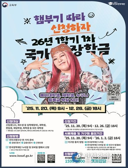 [인천광역신문] 관리자 기자 | 교육부와 한국장학재단은 11월 20일 9시부터 12월 26일 18시까지 2026학년도 1학기 1차 국가장학금 신청을 받는다.
