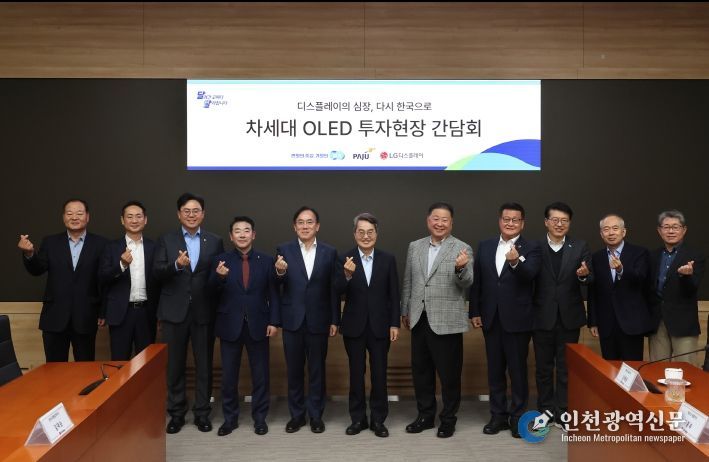 파주 LG디스플레이 R&D동에서 열린 ‘차세대 OLED 투자현장 간담회’에는 김경일 파주시장을 비롯해 박정 국회의원, 안명규·이용욱 도의원, LG디스플레이와 주요 협력사 대표 등 30여 명이 참석했다.
