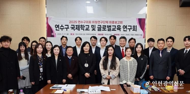 [인천광역신문] 최예준 기자 | 연수구의회 의원연구단체인 '연수구 국제학교 및 글로벌교육 연구회'(대표의원 박민협)는 2025년 11월 17일, 연수구의회 기획복지위원회실에서 최종보고회를 개최했다.