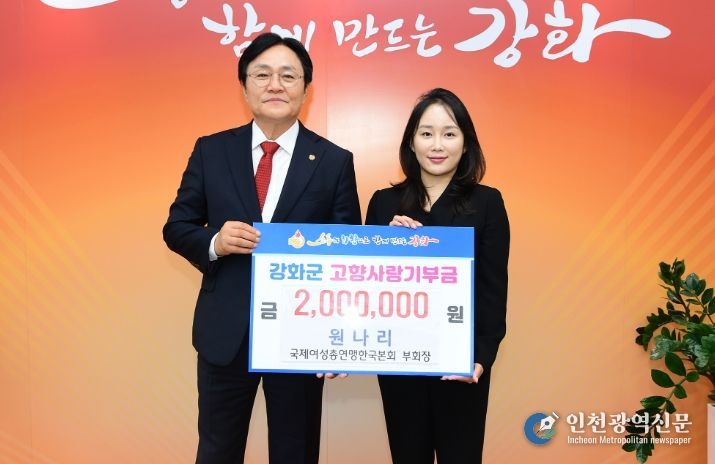 [인천광역신문] 최예준 기자 | 강화군은 지난 20일 원나리 국제여성총연맹한국본회(KGFWC) 부회장이 올해 ‘강화군 고향사랑기부제’의 11번째 고액 기부자로 참여했다고 밝혔다.