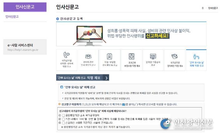 [인천광역신문] 관리자 기자 | 공무원들이 순번을 정해 상급자에게 사비로 식사를 대접하던 관행인 ‘간부 모시는 날’ 근절을 위한 ‘익명 피해 신고센터’가 처음 운영된다.