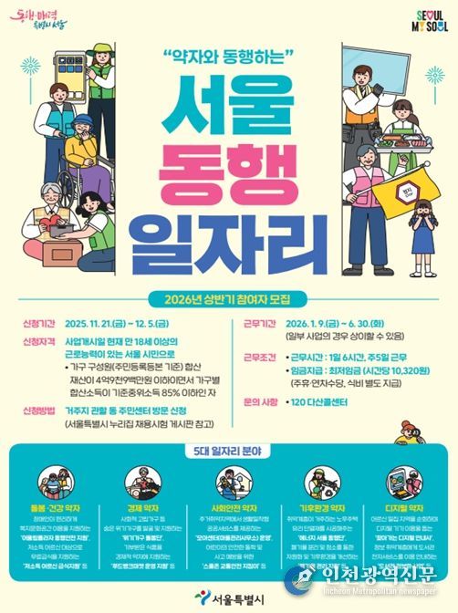 참여를 희망하는 시민은 12월 5일까지 주소지 동주민센터에서 상담 및 신청이 가능하다. 대상은 18세 이상 서울시민으로, 세대원 합산 중위소득 85% 이하이면서 합산재산 4억 9,900만 원 이하인 경우 신청할 수 있다. 최종 선발된 참여자는 1일 6시간, 주 5일 근무하며 일급은 세전 62,000원 수준으로 월 평균 약 180만 원을 받는다.