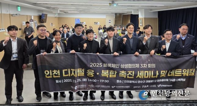 [인천광역신문] 최예준 기자 | 인천광역시는 11월 25일 인천블록체인기술혁신지원센터에서 인공지능(AI)·블록체인 기술의 융복합을 촉진하고 관내 스타트업의 투자 유치를 지원하기 위해 ‘인천 블록체인 상생협의체 회의 및 네트워크 행사’를 성황리에 개최했다고 밝혔다.