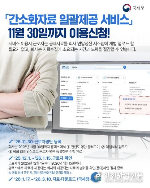 [인천광역신문] 관리자 기자 | 「간소화자료 일괄제공 서비스」 11월 30일까지 이용신청!