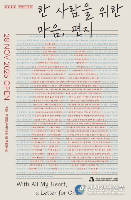 [인천광역신문] 관리자 기자 | 통일부 국립6·25전쟁납북자기념관은 개관 8주년을 맞이하여 11월 28일 오후, 경기도 파주시 소재 기념관 1층 특별전시실에서 '한 사람을 위한 마음, 편지'를 주제로 특별전시 개막식을 개최한다.