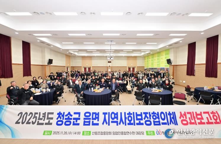 [인천광역신문] 관리자 기자 | 청송군 읍·면 지역사회보장협의체는 지난 26일 임업인종합연수원에서 협의체 위원 110여 명이 참석한 가운데 ‘2025년 읍·면 지역사회보장협의체 성과보고회’를 개최했다.