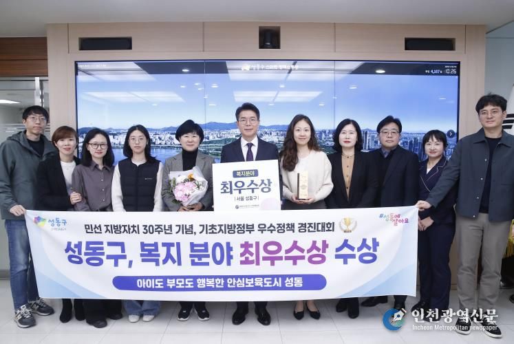 [인천광역신문] 기자 | 서울 성동구가 대한민국시장·군수·구청장협의회가 개최한 '2025 기초지방정부 우수정책 경진대회’에서 복지 분야 최우수상을 수상했다고 밝혔다.