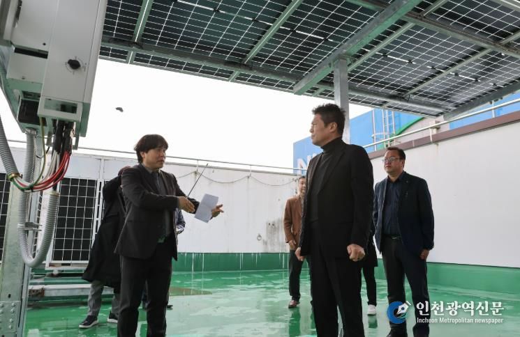 [인천광역신문] 관리자 기자 | 김정헌 인천 중구청장이 지난 11월 27일 올해 신재생에너지 융복합지원사업을 통해 신재생에너지 설비를 지원받은 관내 시설 3개소를 찾아 사업 추진 현황과 운영 성과를 점검하고, 현장 의견을 청취하는 시간을 가졌다.