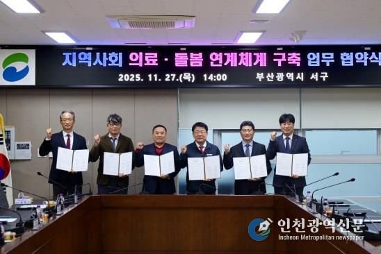 [인천광역신문] 관리자 기자 | 부산 서구는'돌봄통합지원법' 시행에 맞춰, 의료·요양·돌봄 통합지원 기반을 조성하고자 지난 27일 △국민건강보험공단 부산서부지사, △고신대학교 복음병원, △동아대학교병원, △부산대학교병원, △삼육부산병원과 업무협약(MOU)을 체결했다.