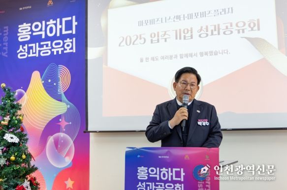 [인천광역신문] 관리자 기자 | 박강수 마포구청장은 12월 1일 오전 11시, 마포비즈니스센터(매봉산로 18) 4층에서 열린 ‘2025년 마포비즈니스센터·마포비즈플라자 성과공유회’에 참석해 입주기업과 창업자들을 격려했다.