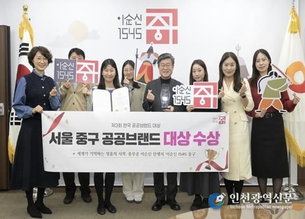 [인천광역신문] 기자 | 서울 중구 도시브랜드 ‘이순신1545’가 ‘제3회 한국 공공브랜드 대상’ 브랜드 커뮤니케이션 부문에서 대상을 수상했다. 이로써 중구는 2년 연속 한국 공공브랜드 대상 수상이라는 쾌거를 달성했다.