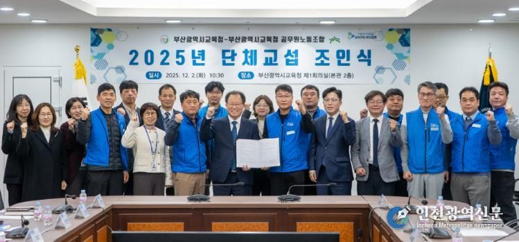 [인천광역신문] 관리자 기자 | 부산광역시교육청과 부산광역시교육청공무원노동조합은 2일 오전 교육청 회의실에서 단체협약을 체결했다.
