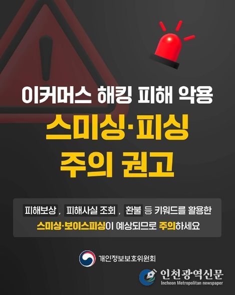 피해보상, 피해사실 조회, 환불 등 키워드를 활용한 스미싱·보이스피싱이 예상되므로 주의하세요.