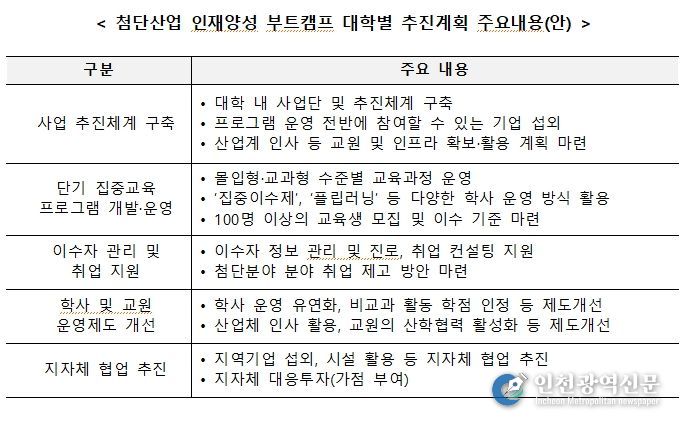 [인천광역신문] 관리자 기자 | 교육부와 한국산업기술진흥원(원장 민병주)은 12월 11일에 ‘2026년 첨단산업 인재양성 부트캠프’ 운영계획을 발표하고, 공고를 통해 참여대학을 모집한다.