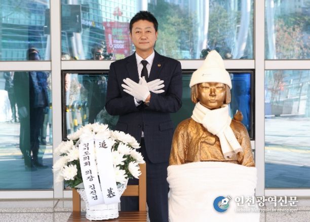 [인천광역신문] 관리자 기자 | 김진경 경기도의회 의장(더민주, 시흥3)은 12일 오전 도의회 1층 입구에서 열린 ‘평화의 소녀상’ 7주년 추모식에 참석해 피해자들의 희생을 기렸다.