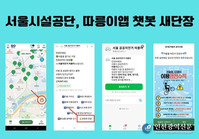 [인천광역신문] 박진 기자 | 서울시설공단이 ‘따릉이’ 앱에 대화형 AI 챗봇을 도입해 시민들의 이용 편의를 한층 높인다. 기존의 단순한 상담 기능을 개선해, 19일부터 새롭게 업그레이드된 채팅 상담 기능을 선보인다.