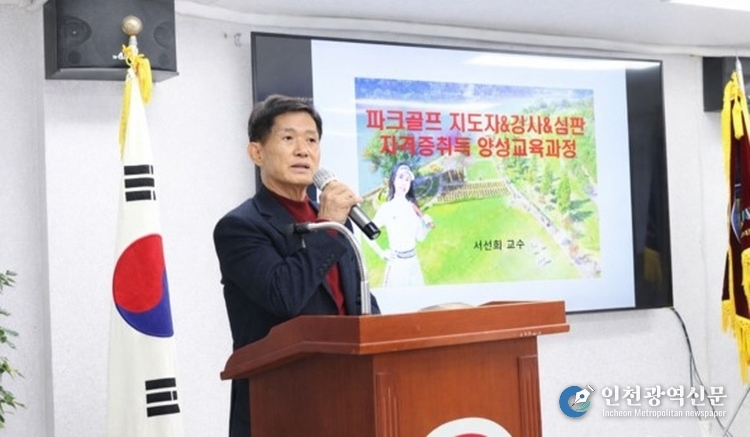 파크골프로 펼치는 사회적기여 인천파크골프연맹(윤전호)지회장은 최근 파크골프의 저변 확대와 전문 인력 양성을 목적으로 파크골프 지도자·강사·심판 자격증 취득을 위한 양성교육을 실시했다.